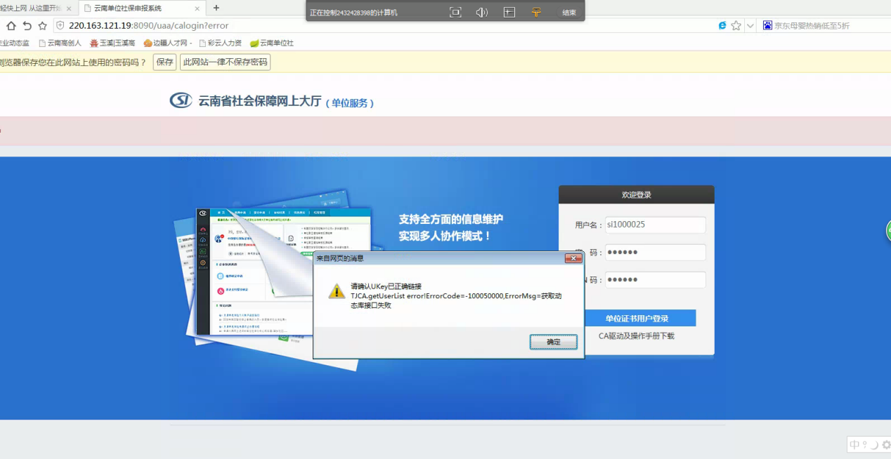 出现以上图片提示则是未插KEY就输入PIN码登录导致,插入KEY重新登录即可。
